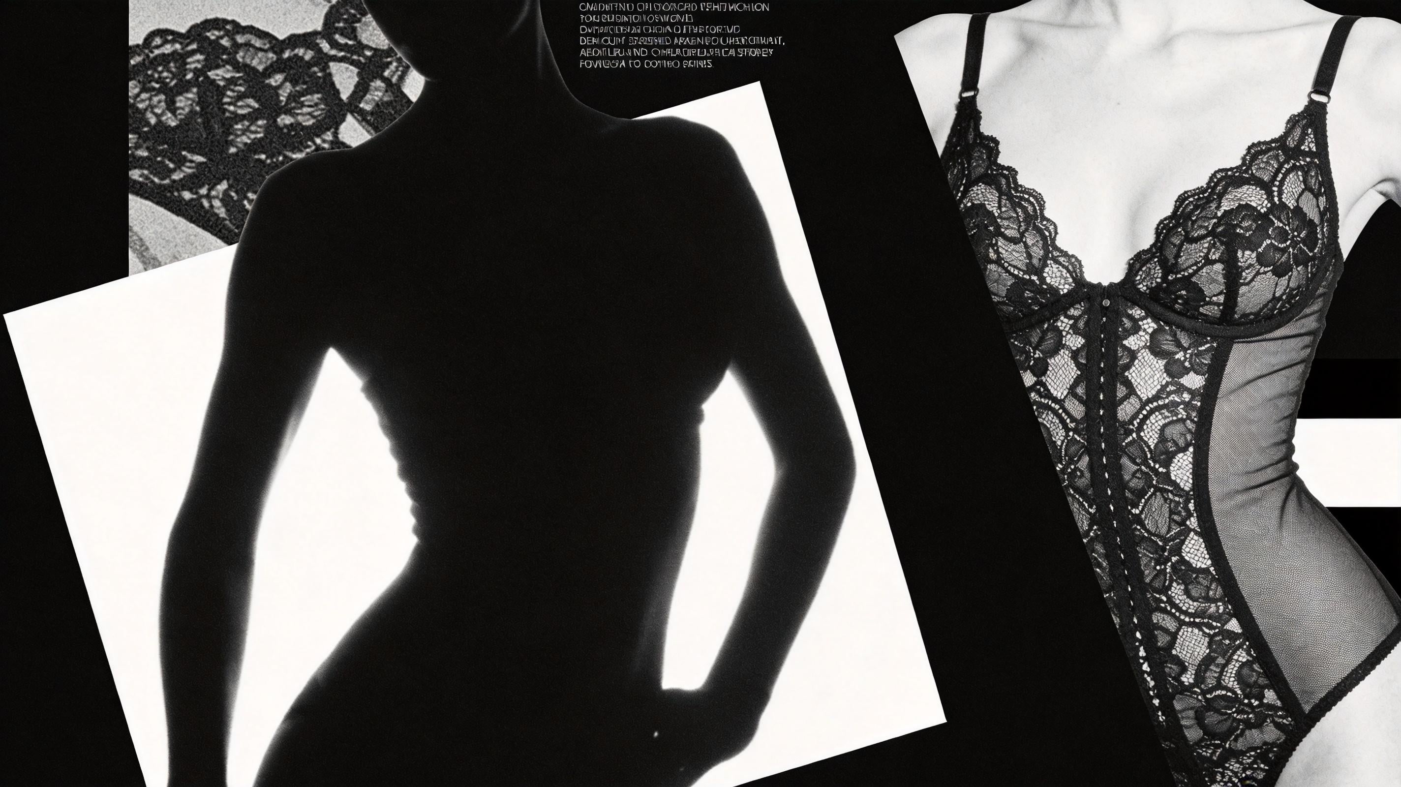 Lace Ruffle Fishbone Patchwork Lingerie Three-Piece Set with Neck and Ankle Rings Black