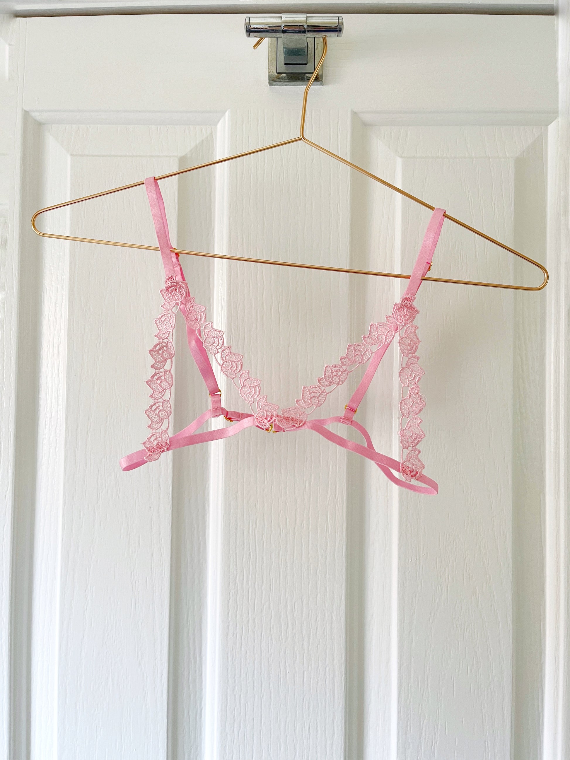 Embrace your feminine allure with this Pink Water-Soluble Floral Hollow-Out Triangle Cup Adjustable Shoulder Strap Halter Garter Three-Piece Lingerie Set. This delicate set, rendered in a dreamy pink hue, captures the essence of soft femininity. It features a lingerie piece with a beautifully detailed water-soluble floral hollow-out design on the triangle cups, creating a tantalizing peek-a-boo effect. The adjustable shoulder straps offer a perfect, comfortable fit, while the matching halter and garter add a flirtatious and playful touch to this captivating ensemble. Whether you're aiming to enhance your everyday lingerie collection or planning a special romantic evening, this lingerie set is sure to elevate your intimate apparel game.